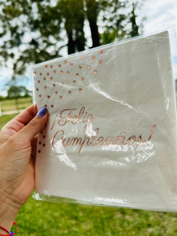 SERVILLETA FELIZ CUMPLE ROSA GOLD